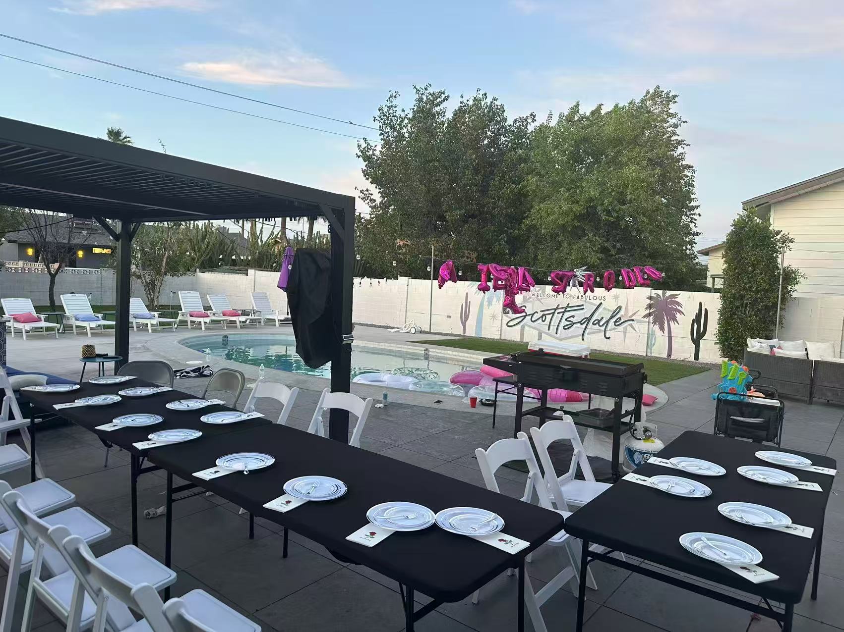 Si necesitas un servicio externo de alquiler de mesas y sillas, podemos ayudarte a coordinarlo.
