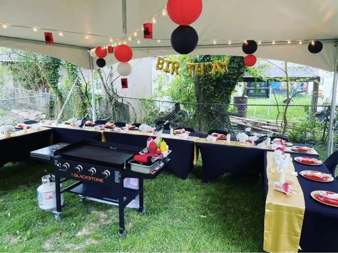 Si necesitas un servicio externo de alquiler de mesas y sillas, podemos ayudarte a coordinarlo.